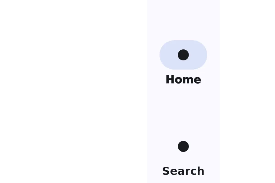 A NavigationRail is a vertical navigation component that displays navigation items with optional menu button and floating action button.
